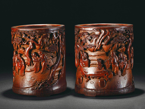 竹雕成為一種藝術(shù),自六朝始,直至唐代才逐漸為人們所識(shí),并受到喜愛。竹雕發(fā)展到明清時(shí)期大盛,漢族竹刻家們雕刻技藝的精湛超越了前代,涌現(xiàn)了“嘉定三朱”等諸多竹雕大家。在中國工藝美術(shù)史上獨(dú)樹一幟,也是漢民族族寶貴的藝術(shù)財(cái)富。竹雕早期通常是將宮室、人物、山水、花鳥等紋飾,刻在器物之上。而且存世的竹雕制品也很少,目前所見的多為明清兩代的傳世品。明清時(shí)期的竹雕制品,雕刻技藝的精湛,早已超越了前代。明代的竹雕風(fēng)格大多渾厚質(zhì)樸、構(gòu)圖飽滿。刀工深峻,而且線條鋼勁有力,圖案紋飾布滿器身。清代前期的竹雕制品帶有明代的遺風(fēng),但表現(xiàn)技法更為豐富多樣,淺刻、淺浮雕的技法同時(shí)并用。